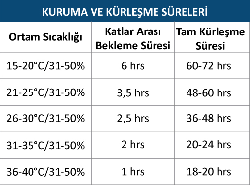 Uygulama Sıcaklığı: Yüzey sıcaklığı uygulama sırasında 5°C’nin üzerinde olmalıdır.